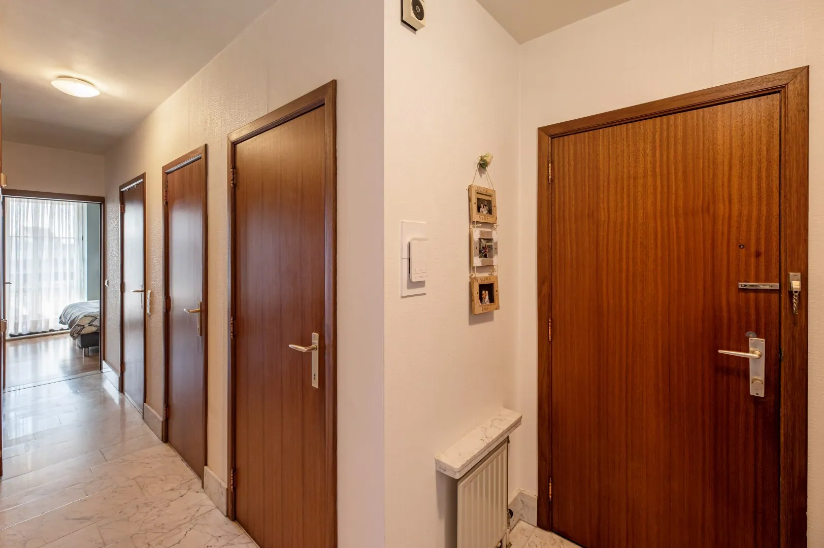De ruime ganghal geeft meteen toegang tot de 3 slaapkamers, een ruimte voor de verwarmingsketel en de comfortabele badkamer met ligbad en dubbele lavabo.