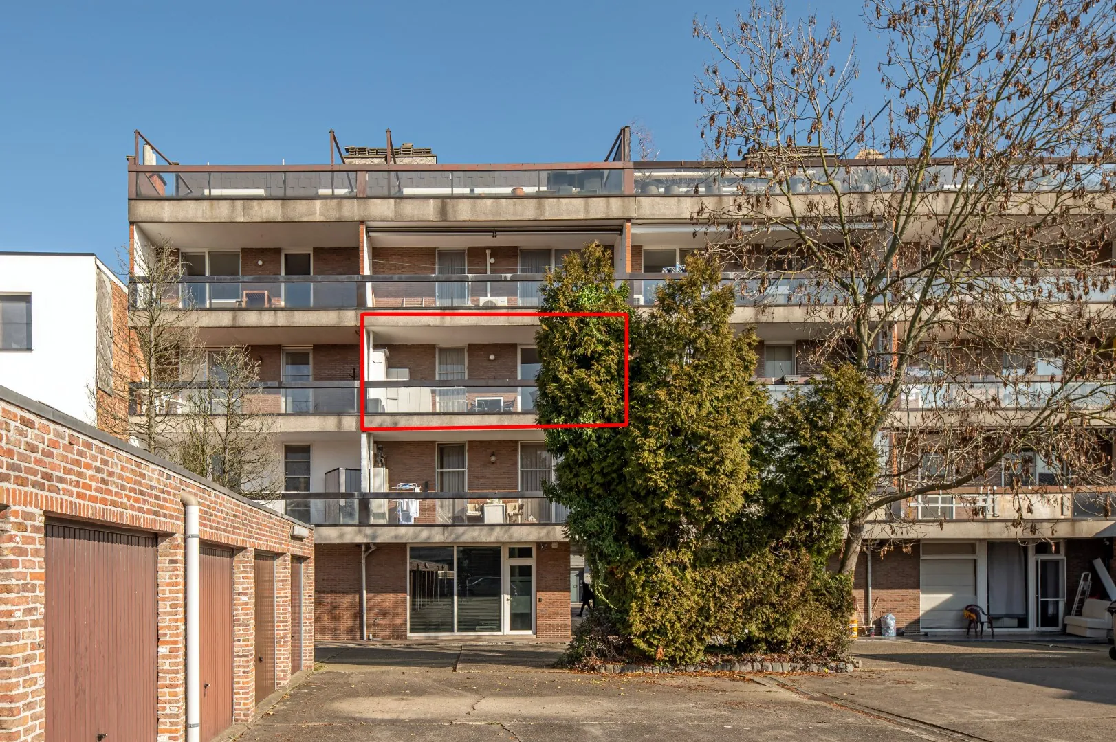 Achter de residentie is er het garagecomplex met daarin de privatieve garagebox en bijbehorende autostaanplaats (verplicht aan te kopen à €25.000).
