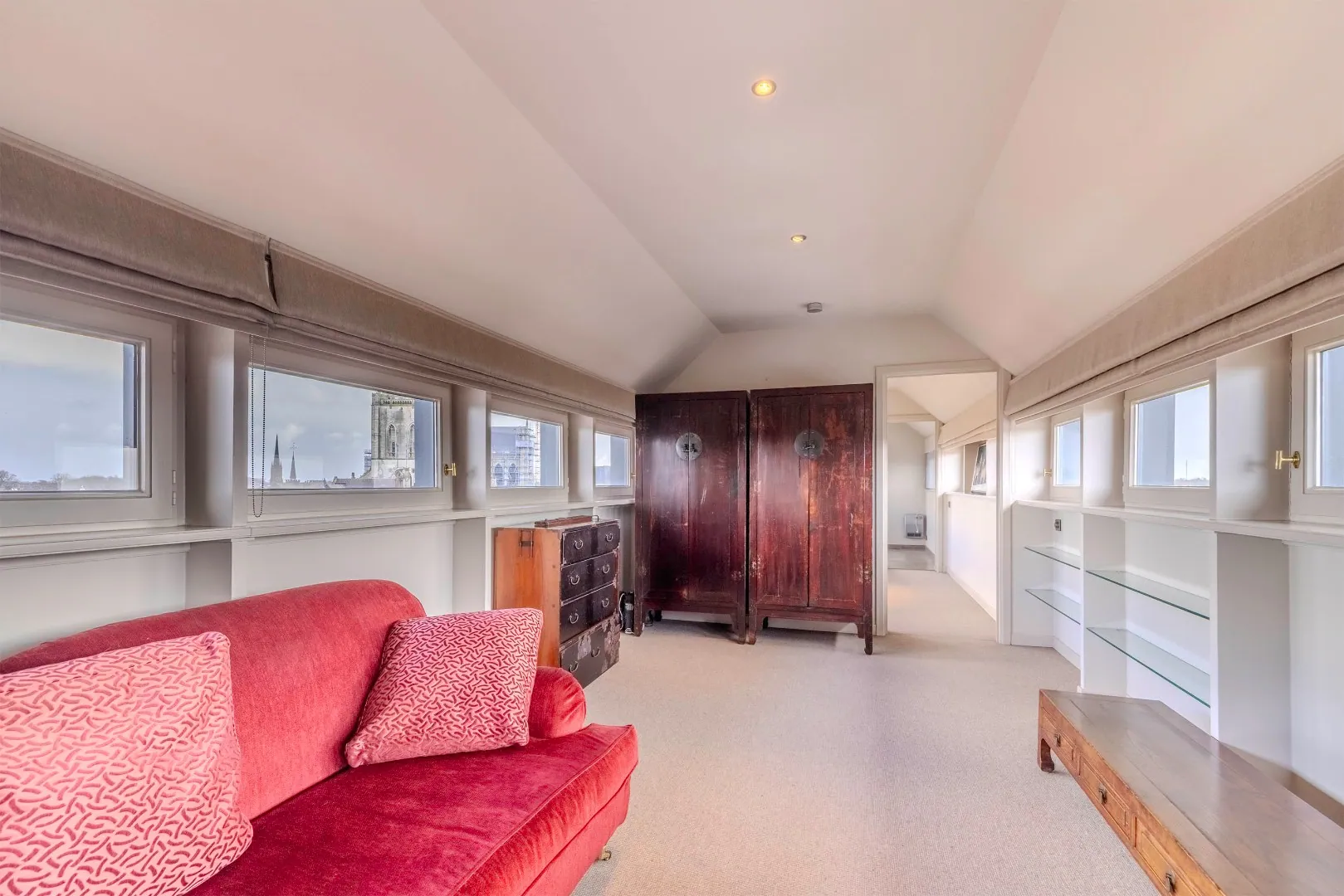Exclusieve penthouse op de hoogste verdiepingen in residentie "Den Tiber". Een ware eyecatcher in één van de mooiste straten van Lier. Aan de Binnenete, op een minuutje van de Grote Markt én het Zimmerplein. In het centrum maar weg van alle drukte. Door de fraaie inkomhal met dubbele poort bereikt u in het hoofdgebouw met appartementen. Via het sas komt u in de gemeenschappelijke binnentuin waar het heerlijk onthaasten is. Langs het poortje achteraan bereikt u de garages, afgesloten met een grote, automatische poort om privacy en veiligheid te garanderen. Het ruime penthouse, voorzien van alle comfort, vindt u in hoofdgebouw op de 4de en 5de verdieping. U waant zich hier letterlijk in de wolken dankzij de vele raampartijen en het unieke panorama. U komt binnen via de riante inkom met gastentoilet en vestiaire, met aansluitend de ruime, open leefkamer, de volledig ingerichte keuken, de slaapkamer met ensuite (inloopdouche, ligbad, toilet en dubbele wastafel) en ruime inloopdressing. Via de trap bereikt u de bovenverdieping met ruime tweede leefruimte/slaapkamer/bureau en de extra slaapkamer met bijhorende badkamer met douche en wastafel. Kenmerken: