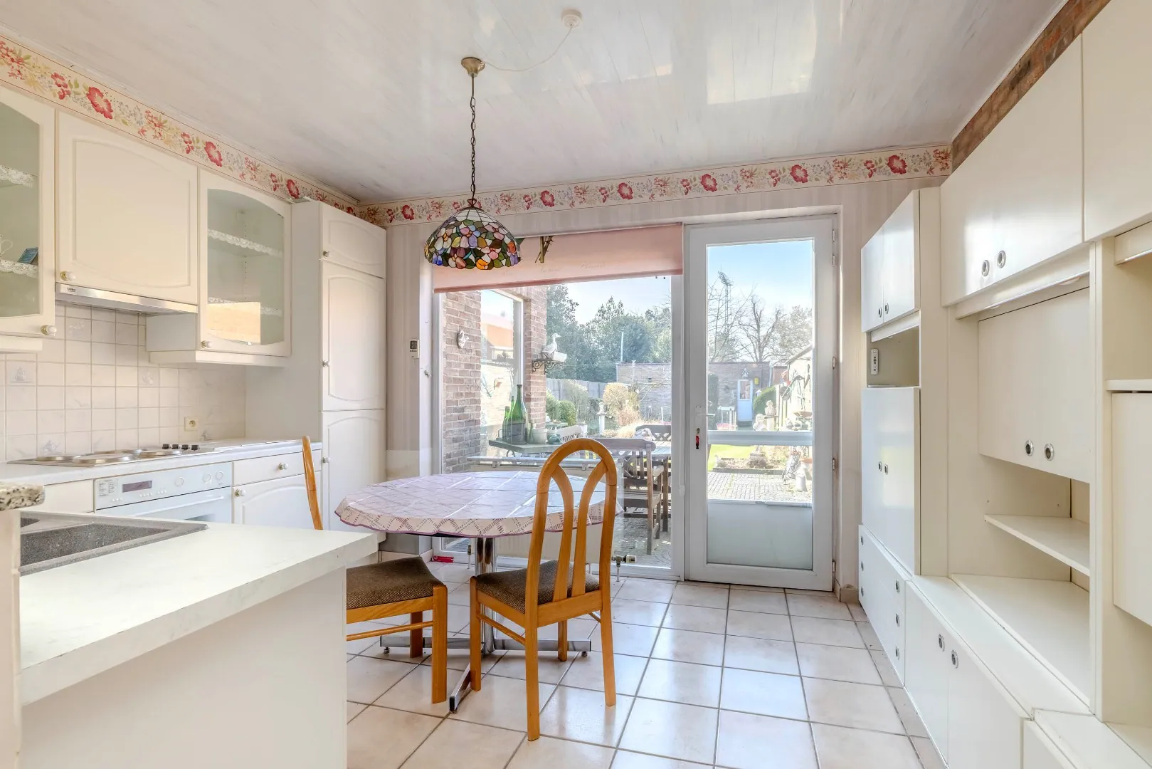 De aanpalende garage is bereikbaar via de berging en biedt plaats voor een wagen en fietsen of bromfietsen.