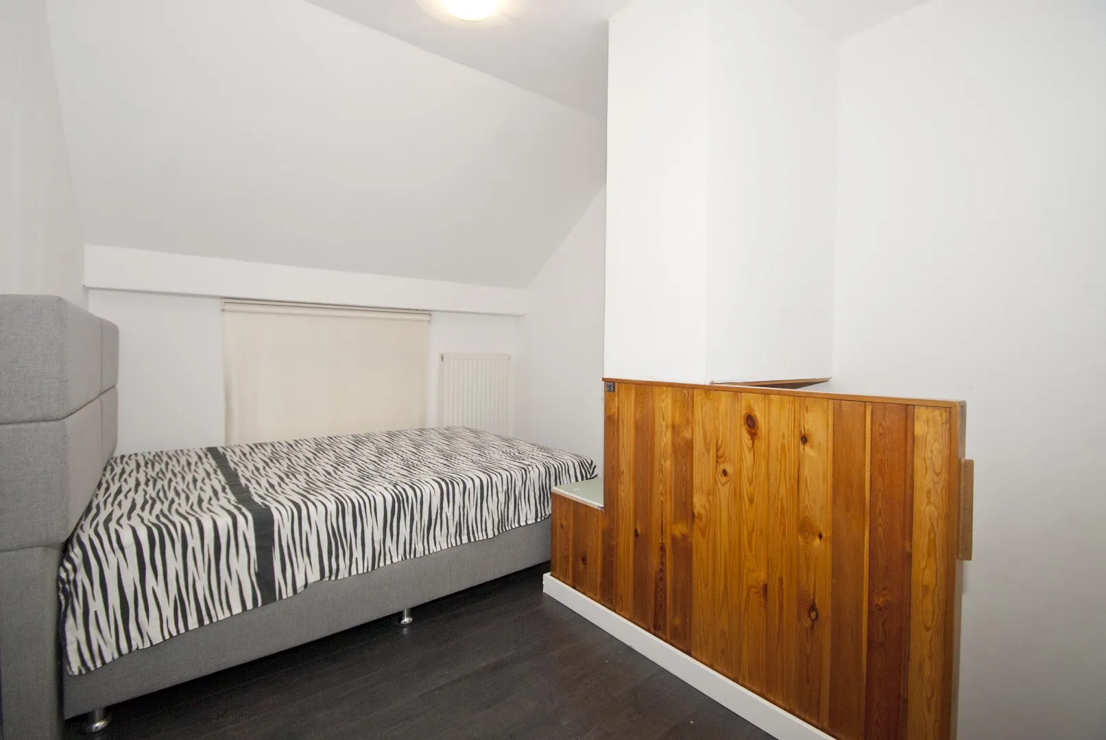 Deels af te werken woning, uitstekend gelegen in een verkeersarme straat. Op 2 minuten van de Grote Markt, vlakbij scholen, openbaar vervoer, winkels, en alle stadsfaciliteiten. Indeling: GLV: inkomhal, af te werken sanitair, garage, technische berging en terrasje (3 m²). Tussenverdieping: woonkamer met kleine, geïnstalleerde keuken; Bovenverdieping: 1 ruime slaapkamer en 1 kleine slaapkamer (of thuisbureel, dressing, ...). Kenmerken: uitstekende ligging, deels af te werken, geen renovatieverplichting, videofoon, garage, klein terras, 1 à 2 slaapkamers, prijs bespreekbaar, elektriciteit conform.