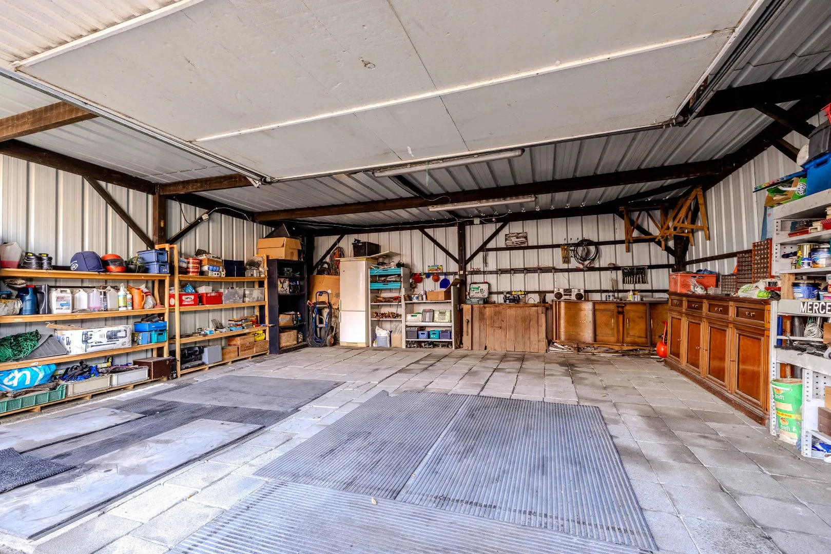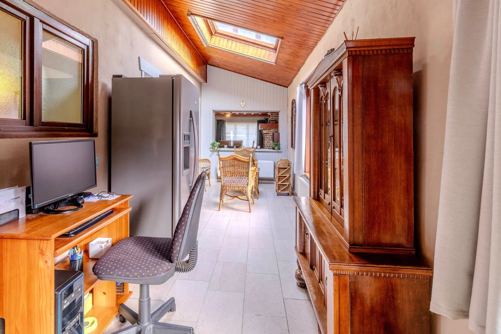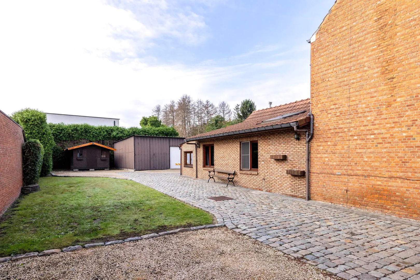 De tuinzones zijn onderhoudsvriendelijk aangelegd met o.a. een oprit op kasseien. Achter de woning is er een multifunctioneel bijgebouw geschikt als magazijn/atelier/garage. Voor de woning ligt er een aangelegde parking voor meerdere wagens.
