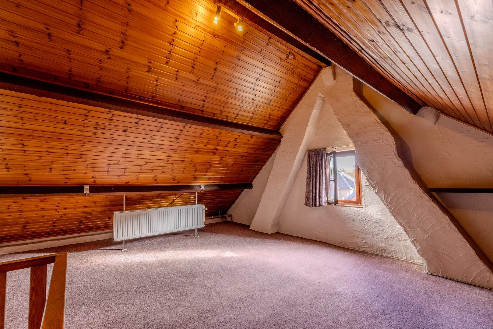 De leefruimte is nog uitbreidbaar via de ruime zolder die bereikbaar is via een vaste trap. Er is eveneens een proviandkelder.