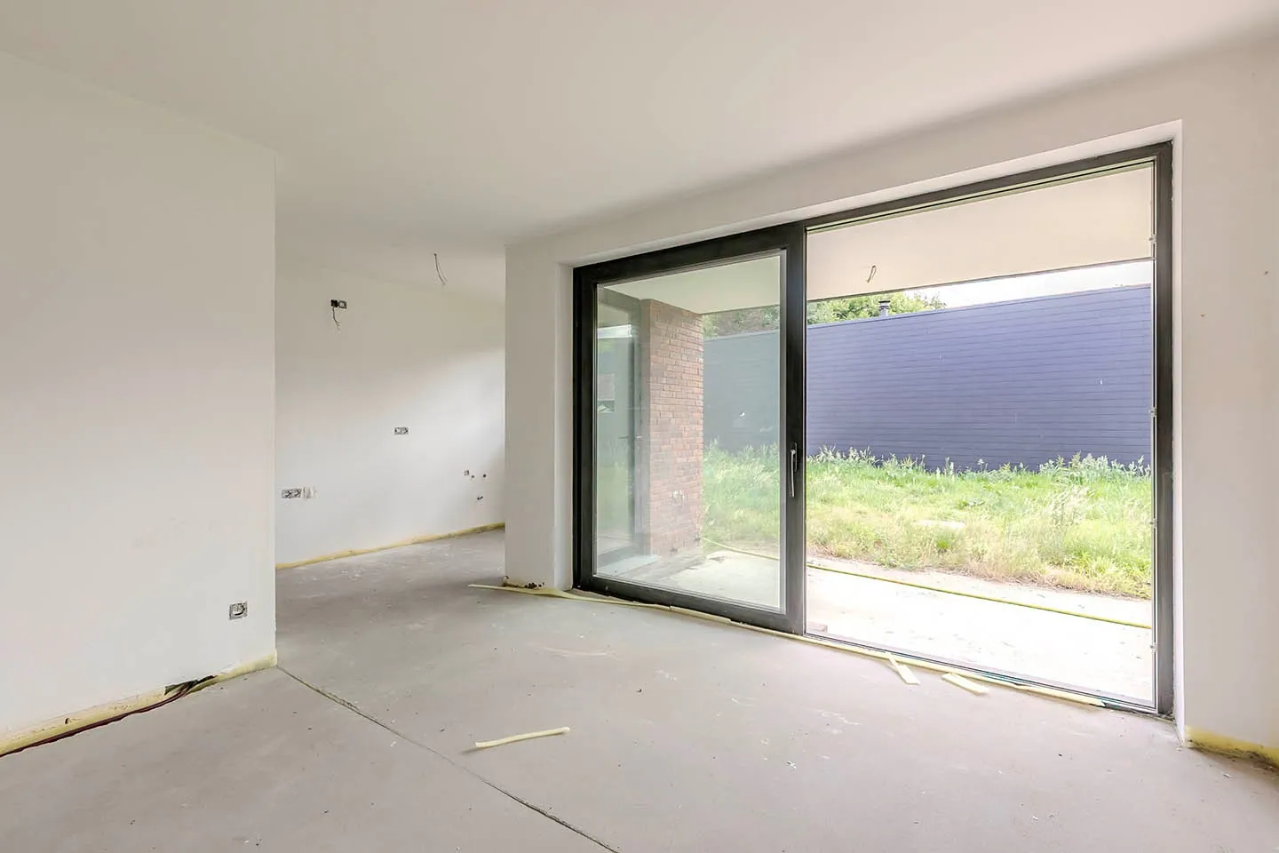 Terras en tuinzones worden aangelegd. De tuin wordt omheind en er is een ruime berging.